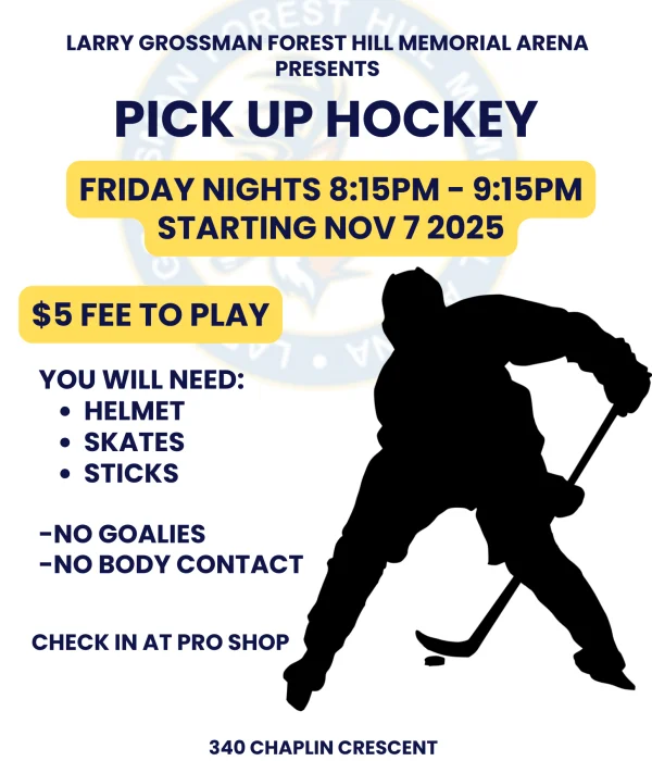 At Larry Grossman Forest Hill Memorial Arena, we’re more than just an ice rink, we’re a community hub where families, athletes, and friends come together to share the joy of skating. Our arena offers professionally maintained ice, modern facilities, and a safe, welcoming environment for all ages and skill levels. With certified instructors, diverse programs in figure skating and hockey, and a commitment to quality and safety, every visit becomes a memorable experience. We take pride in being a trusted part of the Forest Hill community, offering affordable fun, exciting events, and partnerships with local organizations like the Forest Hill Hockey Association and Forest Hill Figure Skating Club. Whether you’re learning to skate, training for competition, or enjoying a family outing, you’ll always find warmth, energy, and excellence at Larry Grossman Forest Hill Memorial Arena.
